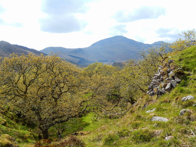 So, after two attempts and a long detour I arrived at the summit of Dinas Emrys, with its ramparts and remains of walls and foundations. The views from there were amazing, which is probably why it was chosen (apparently by Llewelyn the Last) as a castle stronghold to guard the mountain pass of Snowdon.