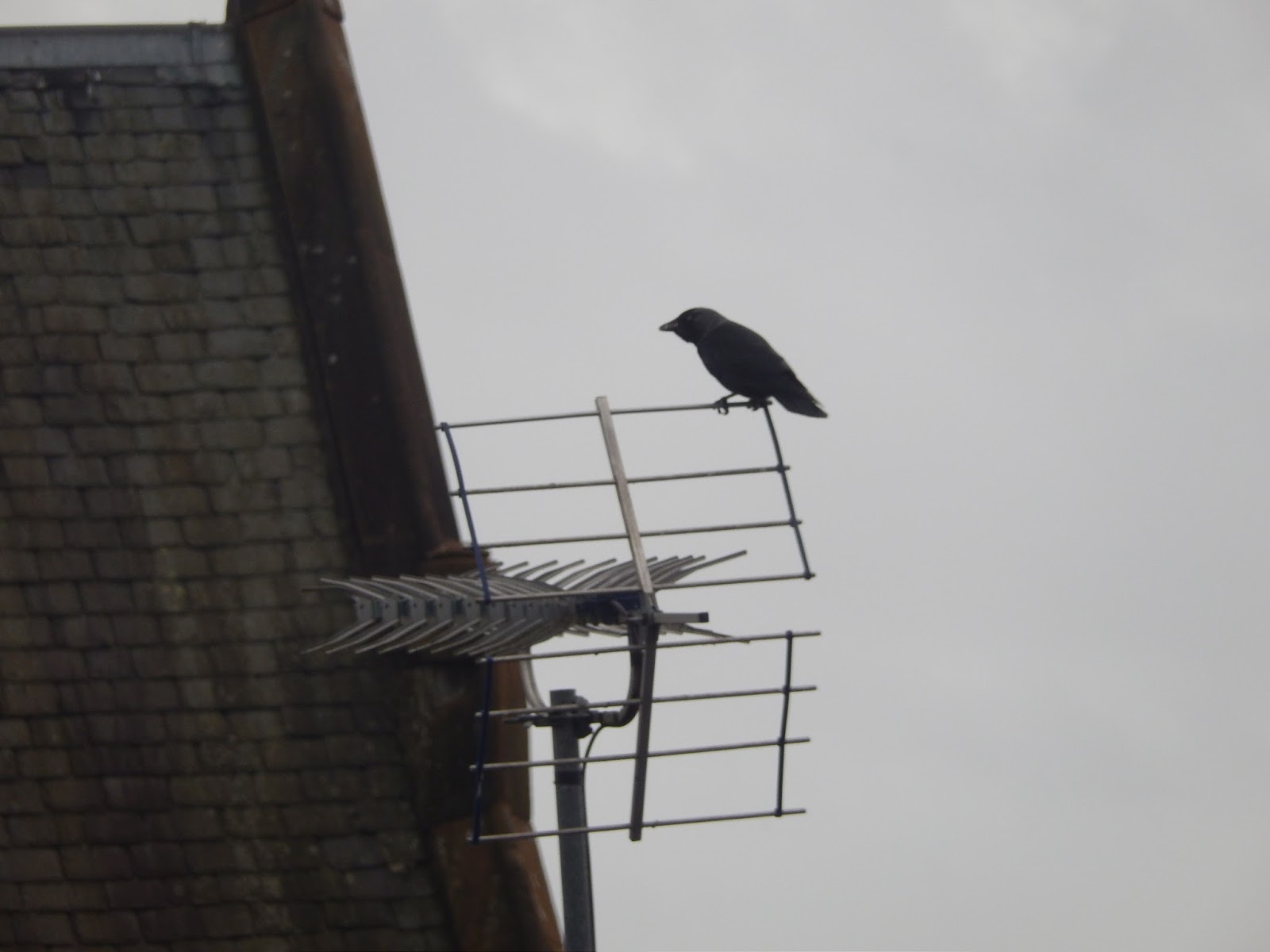 As some of you may realize, I have not indulged in my love of jackdaws for a number of postings. However, here’s another instalment. After I checked in, I went to my room to unpack and when I looked out my window I noticed a few jackdaws on nearby rooftops. Suddenly, a whole flight of them decided to put on a display for me, I kid you not, for the next half an hour. Below are some photos I took of their aerobatics and antics: