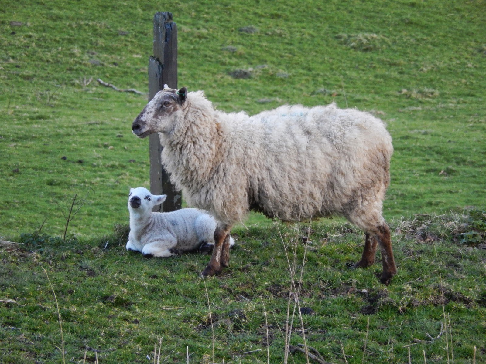 | Lambing season, though I missed taking a photo of the lamb gambolling around its mother |