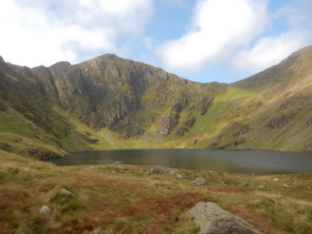 | View back, showing Llyn Cau, Craig Cau and the knoll of Penygadair. And we actually climbed that high! |