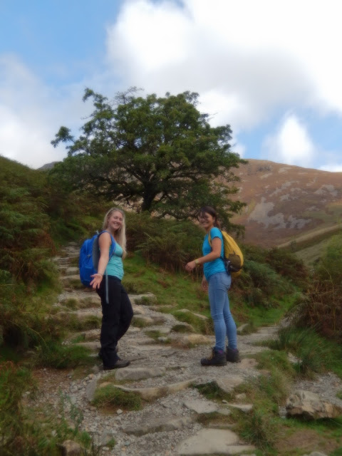 Eventually, we came to a stile and began a steep descent on a loose, pebble-strewn path that after a while became welcoming slate steps.