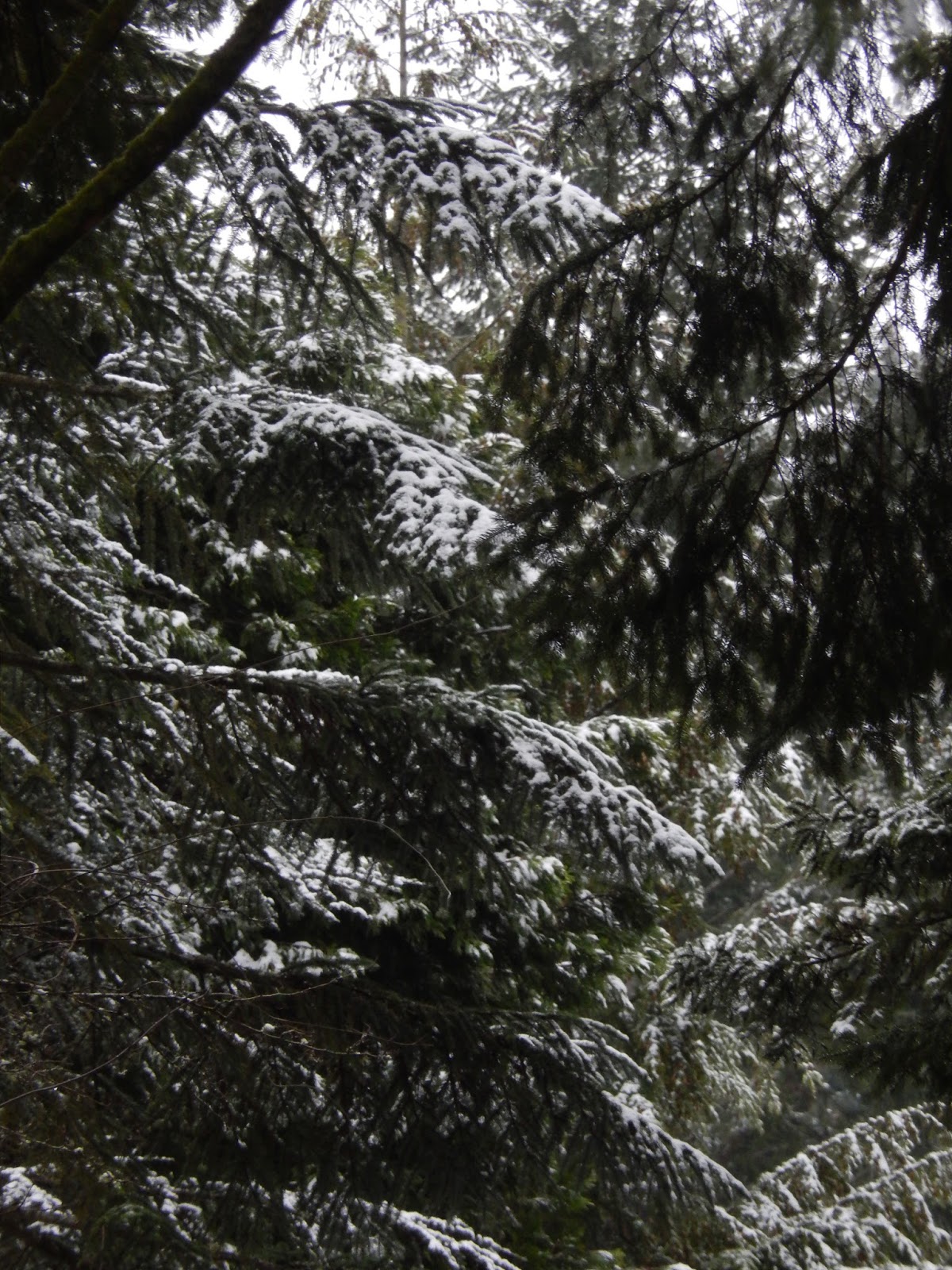 | Light dusting of snow on cedar trees |